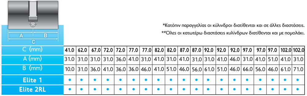 Κύλινδρος ασφαλείας με αναστρεφόμενο κλειδί Elite 1
